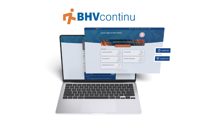 Continu leren is het perfecte platform om kennis op het gebied van BHV, EHBO, VCA, Crisismanagement of Weerbaarheid up-to-date te houden op een leuke manier. Medewerkers leren adaptief. Zo oefenen medewerkers vooral met de thema's die ze nog minder goed beheersen. Het spelelement motiveert extra om te blijven oefenen.