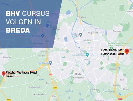 Wij streven ernaar om ervoor te zorgen dat een BHV cursus voor iedereen in de buurt te volgen is. Daarom hebben wij BHV locaties beschikbaar door heel Nederland. Bekijk alle locaties en kies de locatie waar jij graag de BHV cursus Breda wil volgen. We bieden de volgende cursussen aan in Breda: